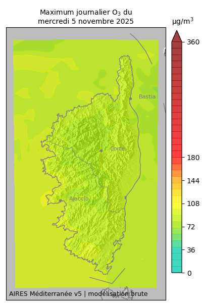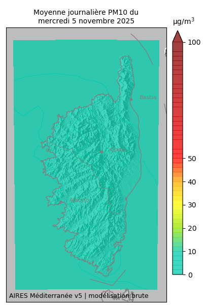 Ces sorties constituent une sortie brute des outils de modélisation et doivent être considérées comme telles. Elles ne constituent qu'un des paramètres analysés par les prévisionnistes pour établir leur prévision de la qualité de l'air.
